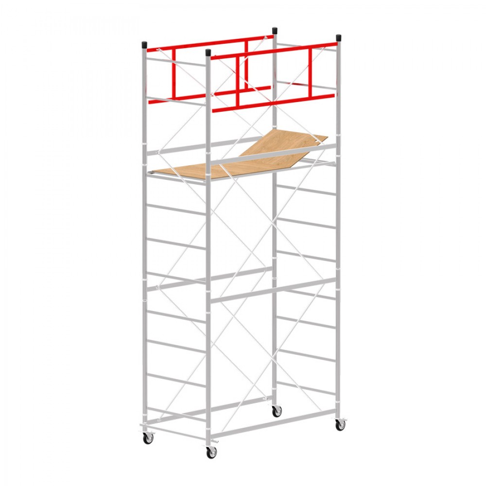 Il trabattello M4 LUX con base normale è adatto per usi professionali, edilizia, manutenzioni civili ed industriali, settore elettrico. Facile da montare e smontare, è corredato di ruote da diametro 125 mm. Il piano di lavoro in legno è raggiungibile dall'interno attraverso una botola di passaggio. I piani di lavoro sono collegabili ogni 30 cm. I tiranti diagonali sono facilmente applicabili su appositi bussolotti alettati senza alcun uso di viti e bulloni. Il trabattello è zincato elettroliticamente e completo di certificato di conformità.
